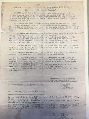 My Grandfathers trawler capsised at sea off Greece, from what i understand he was on a mine sweeping mission, this is a letter of recommendation for bravery, quite incredidle how it was asked for the boots to be returned! He never spoke of this event