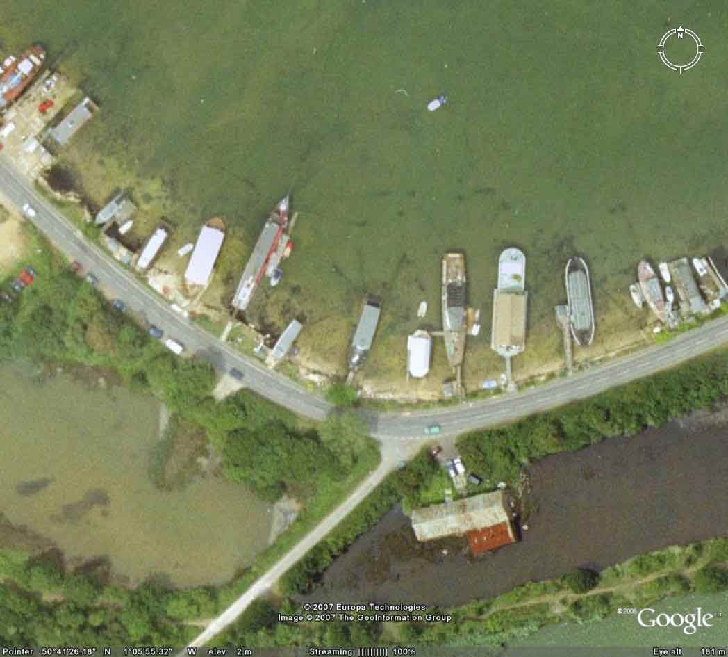 Agree though that sometimes it doesn't work- can't see my parents house.... can see our boat :) Big white boat on 'bottom' wall of harbour- next to her is blue boat and the next one is our pinnace with our friends yacht moored alongside. Picture taken around July '06 so not too out of date! |
