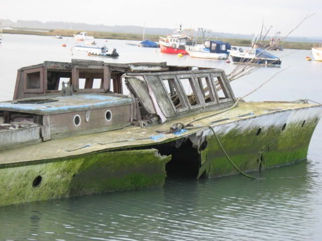 Down at WM this weekend, so I had a chance to see 145, not much has changed since last time, the hole in the stbd side is a bit bigger, deck may be sagging a bit more, it was high tide I couldnt see too much.