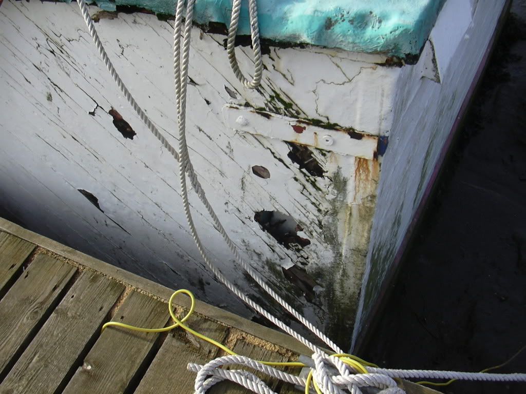The phots I took do not really convey very well how rotten the planking is, I've 10 years of practical experience with my own much smaller wooden craft, I can tell you that boat is very poorly.