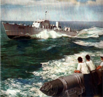 The ‘Gatric’ Experiment. Here is a poor but rare colour image, taken in 1947, of 2009 shown as converted for Gas Turbine propulsion. Originally built by Messrs Camper Nicholson as MGB 509 – later MTB 2009 – she was one of a small class of naval vessels, famously associated with the ‘ball bearing’ runs across the The vessel began her life being quite unique in that she was originally powered by 3 of the later versions of the supercharged Packard petrol engines - delivering 1500hp each, (the remainder of her class of 8 having Paxman diesels fitted). The Metropolitan-Vickers Electrical Company Limited (as it was then known) built the worlds first marine-ised version of the gas turbine engine unit and thus this vessel became the Worlds first GT powered craft. Connected to the centre shaft, the unit was estimated to deliver 2500shp, giving her a speed of 24knts on that shaft only. No speed records were attempted, the experimental ‘Gatric’ engine being used solely to prove the viability of GT propulsion for naval craft.